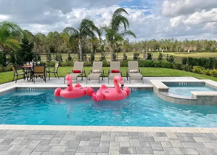Die 6-Zimmer- 7738 Disney Dream Home liegt im Bezirk Celebration und bietet einen Jacuzzi sowie einen Außenpool für einen entspannten Aufenthalt.